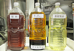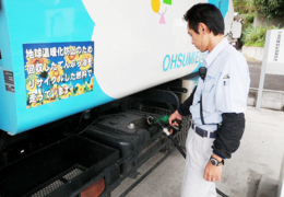 一般家庭から排出される天ぷら油等の廃食用油は、通常、ごみとして廃棄されてしまいますが、曽於市・志布志市・大崎町では、各家庭の身近にあるごみ集積所を通じて広く家庭から廃食用油を回収し、バイオディーゼル燃料に再生した後、ごみ収集作業にあたる車両又は、リサイクルセンターで作業するフォークリフトなどの燃料として再利用しています。